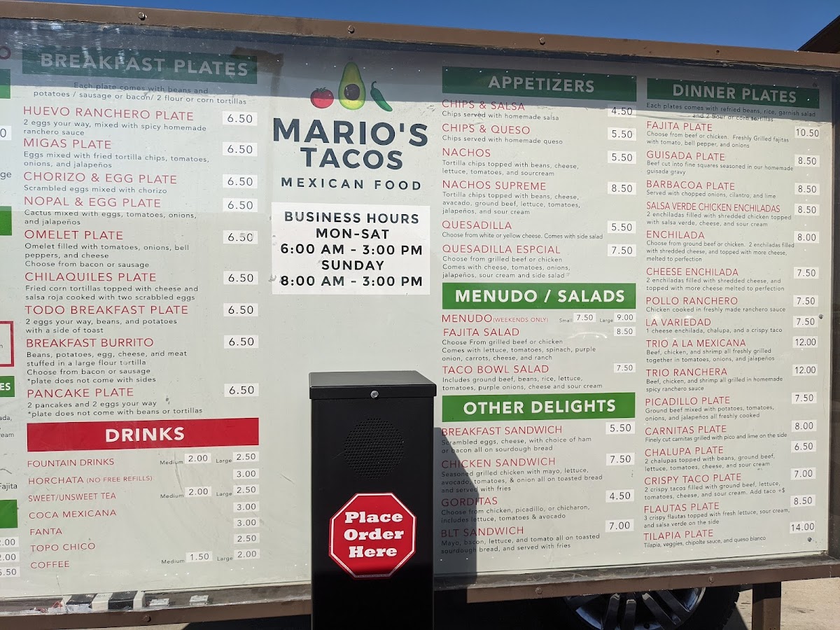 Each visit promises friendly service and generous portions, creating an atmosphere that's both welcoming and satisfying. Mario’s Tacos is truly a gem for anyone craving authentic Mexican cuisine.